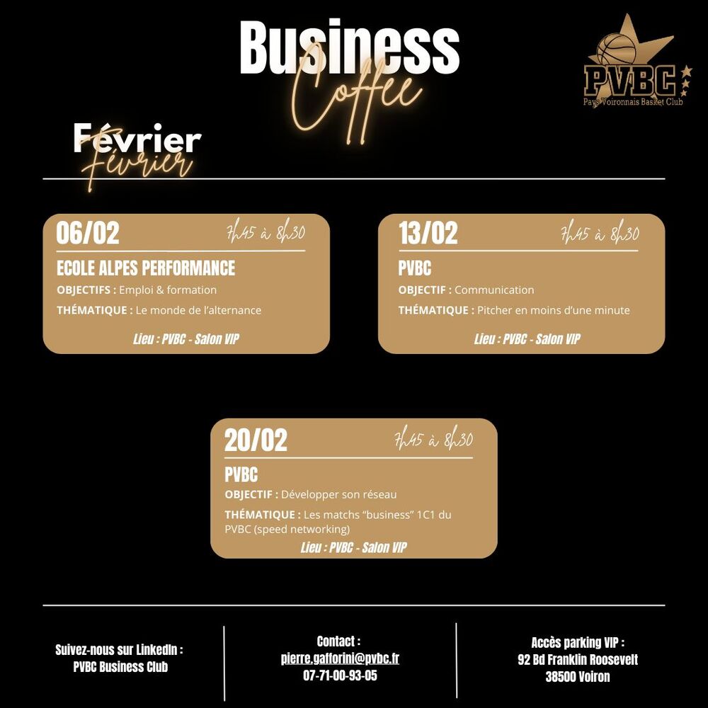 👉 20 février : Les matchs "business" 1C1 du PVBC (speedworking)